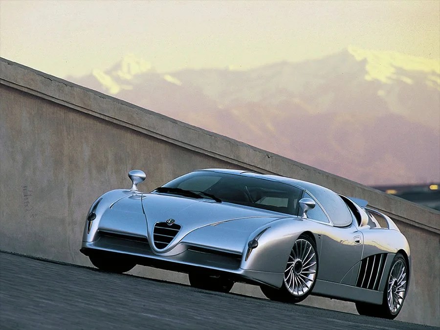 A mid-engined, twin-turbo V6 concept that hinted at a structurally serious Alfa future.