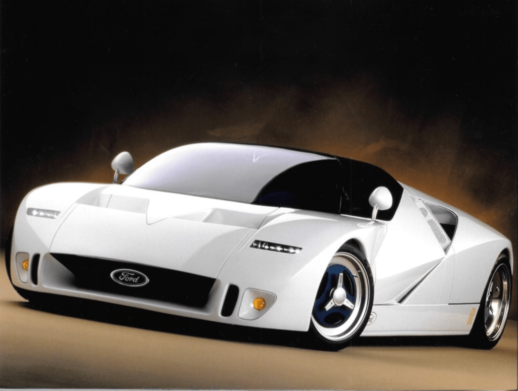 A quad-turbo V12 supercar concept from Ford during a period of deep corporate restraint.