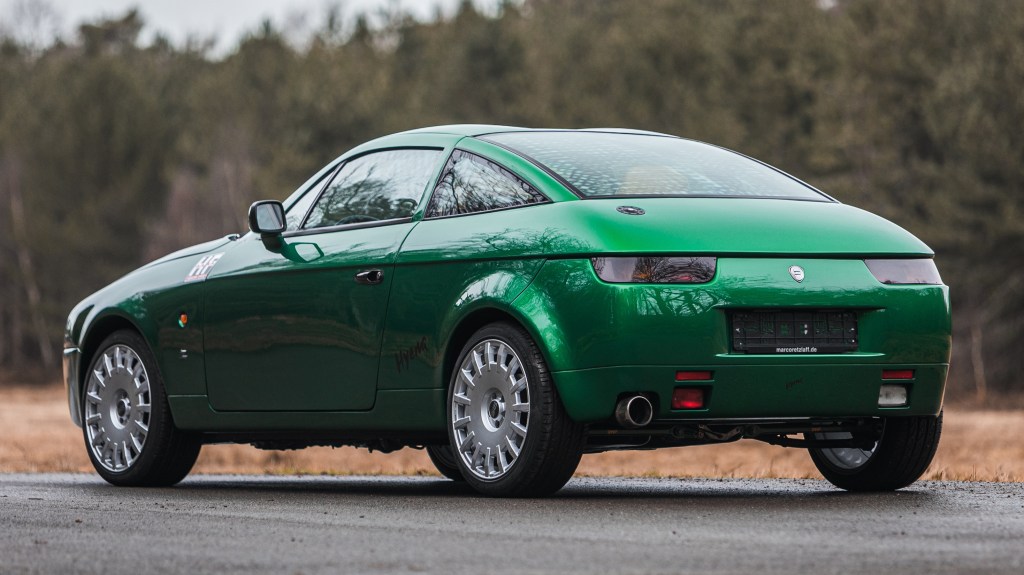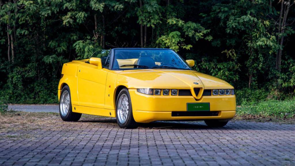 Built in the early 1990s as the roadster counterpart to the SZ, the RZ took Alfa’s wonderfully odd late-80s and early-90s design language and pushed it into something even more divisive. It is blocky, abrupt, dramatic, slightly awkward in profile, and utterly uninterested in flattering anyone who prefers their performance cars to be conventionally handsome.
