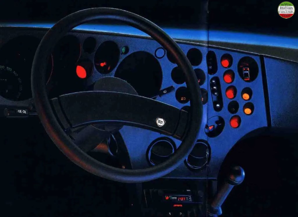 The Trevi’s interior became famous — and not accidentally — for what everyone quickly started calling the “Swiss cheese” dashboard. Designed with input from Mario Bellini, the instrument panel is dominated by a series of dramatic circular recesses and clustered openings that make it look as though somebody took a conventional dashboard, attacked it with an industrial hole saw, and then somehow convinced management that this was not only acceptable, but sophisticated.